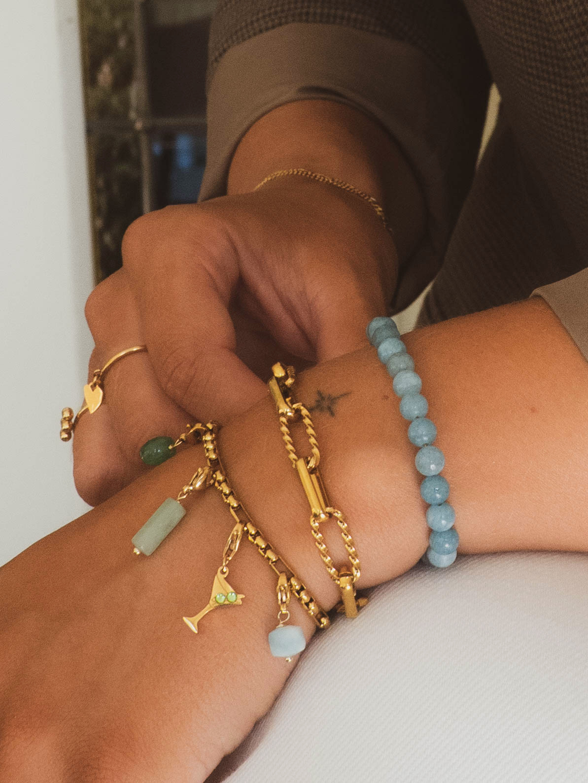 De Abbey armband is een echte musthave voor wie houdt van een krachtige, maar stijlvolle uitstraling. De grove schakels vormen een speels ritme van glad en twisted design, waardoor de armband meteen karakter krijgt. Dankzij het stoere en tegelijk elegante ontwerp draag je hem moeiteloos solo als statement piece, maar hij leent zich ook perfect om te combineren met onze bedels. Zo maak je er eenvoudig een persoonlijke armband van die helemaal bij jouw stijl past. Abbey is tijdloos, veelzijdig en een opvallende toevoeging aan je collectie.