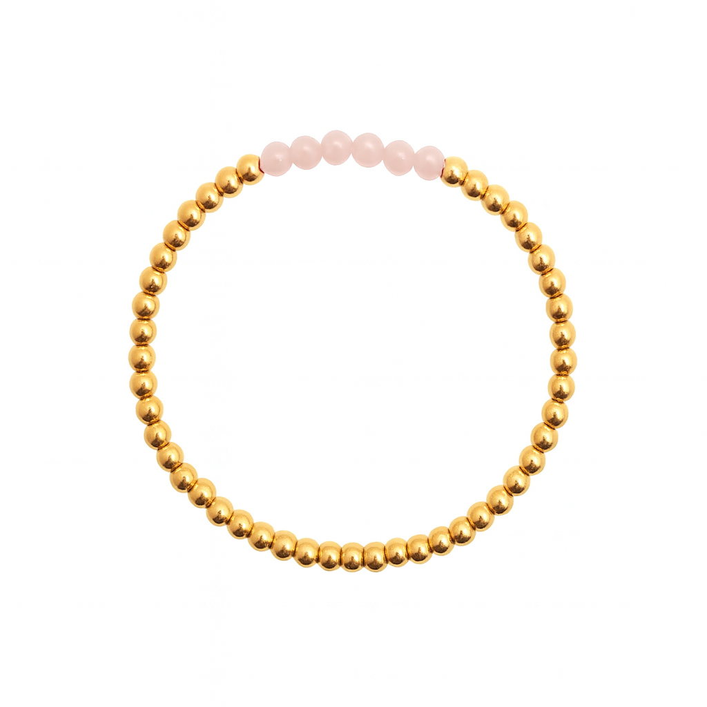 Voeg een zachte en verfijnde touch toe aan jouw sieradencollectie met deze gouden beads bracelet met roze aventurijn. Roze aventurijn staat bekend om haar rustgevende en vrolijke uitstraling, met haar subtiele pastelroze tinten die perfect harmoniëren met de glans van de goudkleurige kraaltjes. Elke steen heeft zijn eigen unieke schakering, waardoor iedere armband een geheel eigen karakter heeft.