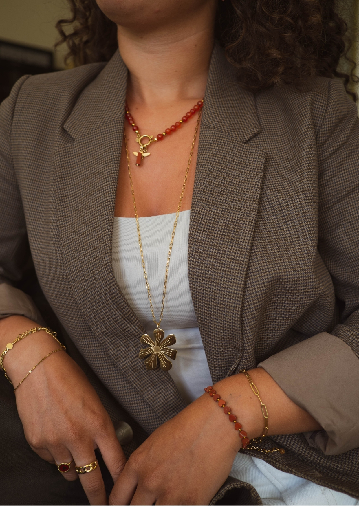 Deze cube bedel van rode jaspis is de perfecte mix van eenvoud en betekenis. De warme, diepe kleur van de steen staat symbool voor kracht, energie en balans, terwijl de strakke kubusvorm zorgt voor een moderne en minimalistische uitstraling. Dankzij dit ontwerp laat de bedel zich moeiteloos combineren met andere bedels of sieraden, maar komt hij ook prachtig tot zijn recht als subtiel statement piece.