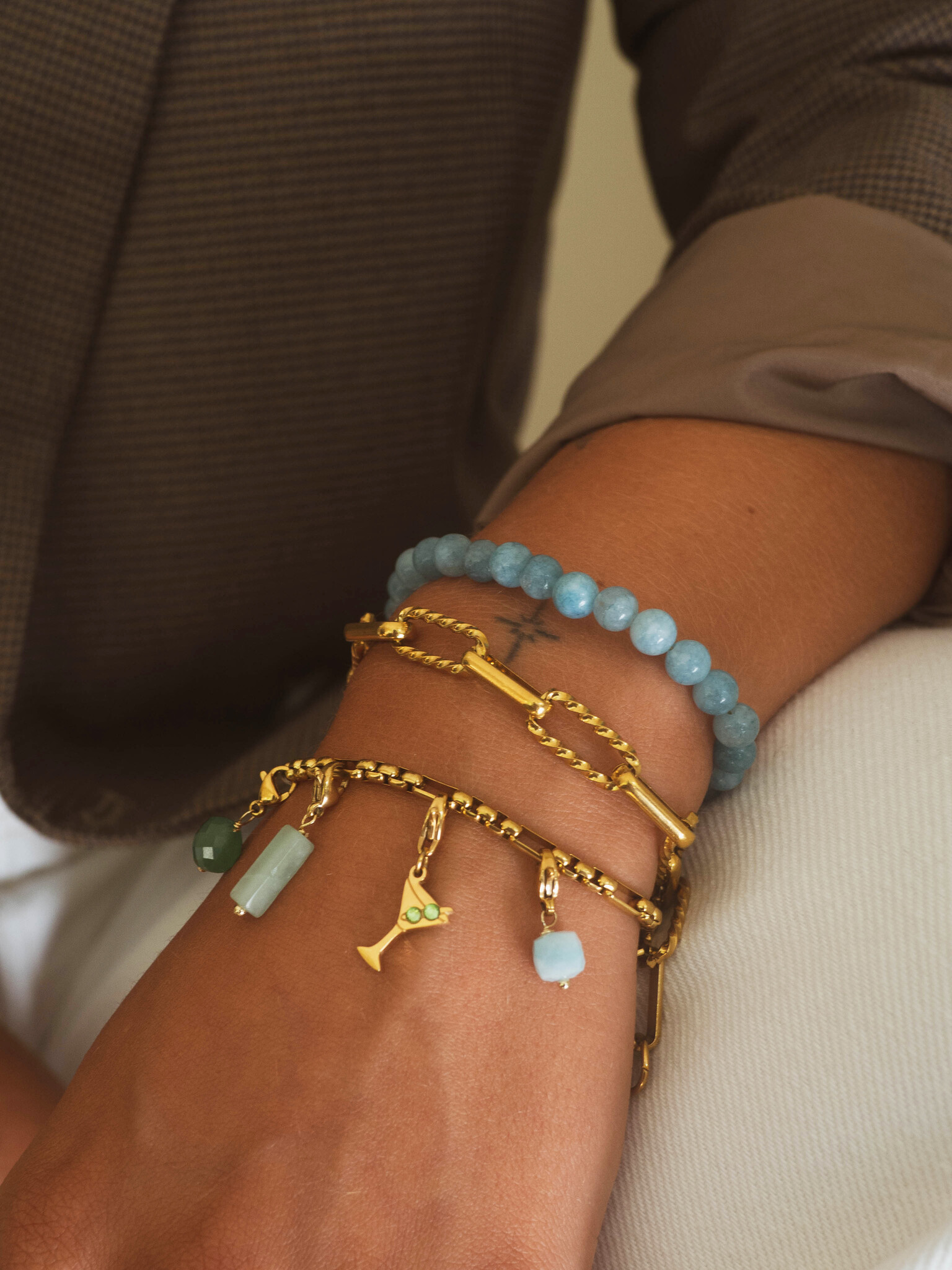 Deze bedel van blauwe jade combineert rust en elegantie in een strak, vierkant ontwerp. De gladde, gepolijste afwerking benadrukt de diepe, kalmerende kleur van de steen, waardoor de bedel een serene en stijlvolle uitstraling krijgt. Blauwe jade staat bekend om balans, communicatie en innerlijke rust te bevorderen, waardoor dit sieraad zowel mooi als betekenisvol is. Draag hem solo als subtiel statement of combineer met andere bedels voor een unieke, persoonlijke look die tijdloos en modern tegelijk aanvoelt.
