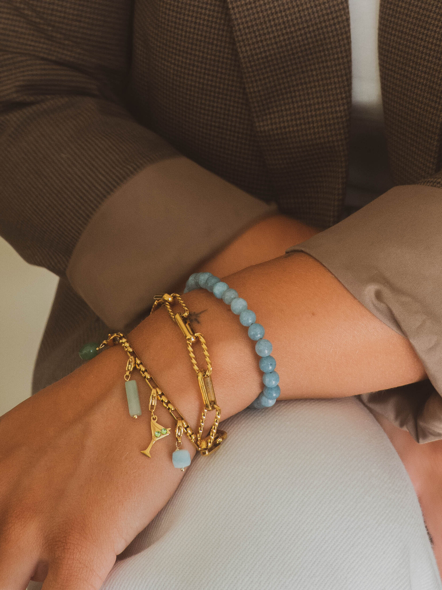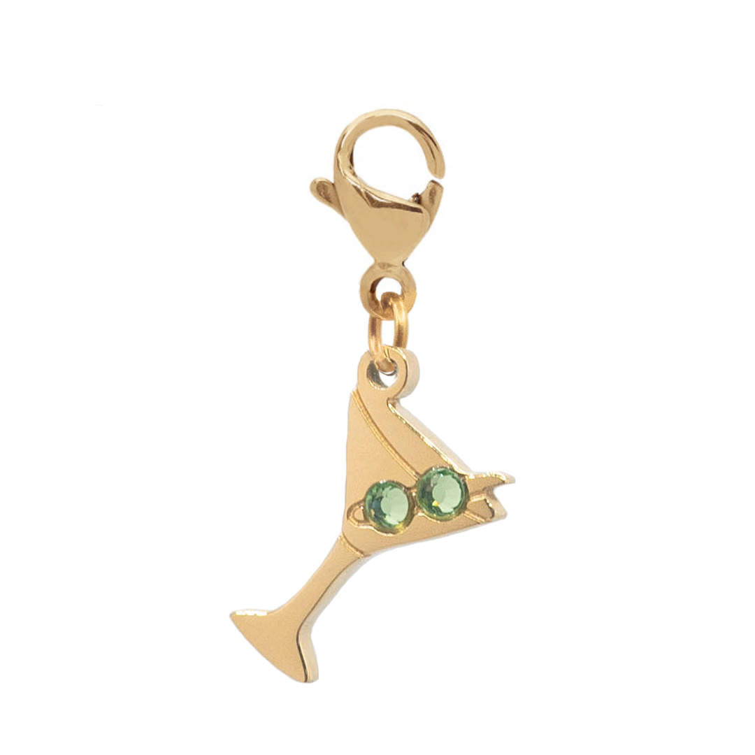 Deze kleine martini-bedel is een subtiele eyecatcher vol karakter. Het verfijnde glaasje wordt extra bijzonder door de twee groene diamantjes die de olijfjes voorstellen, een speels detail dat meteen opvalt. De bedel straalt feestelijkheid en elegantie uit en voegt een chique, vrolijke knipoog toe aan je sieradencollectie.