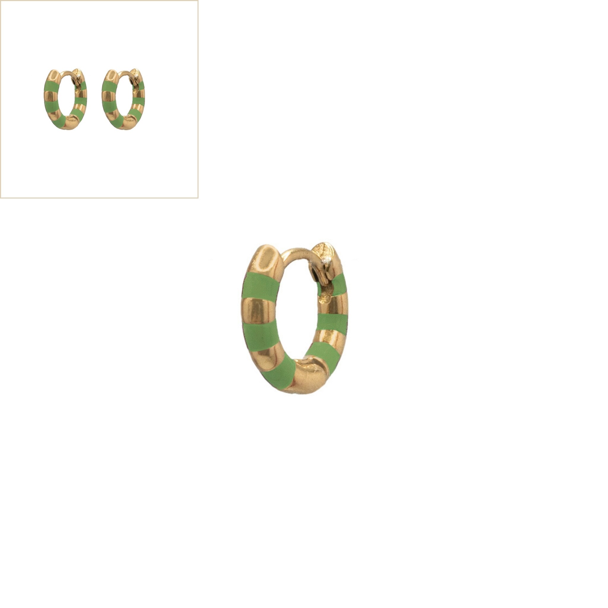 Deze gouden creolen met subtiele strepen in taupe, bordeauxrood of groen geven je look net dat beetje extra. De kleuraccenten zorgen voor een speels en stijlvol detail dat makkelijk te combineren is met verschillende outfits. Draag deze creolen voor een rustige look, of mix en match met onze andere oorbellen voor een unieke earparty. Tijdloos met een moderne twist, perfect om je stijl te laten spreken zonder te overdrijven. Een must-have in je sieradencollectie!