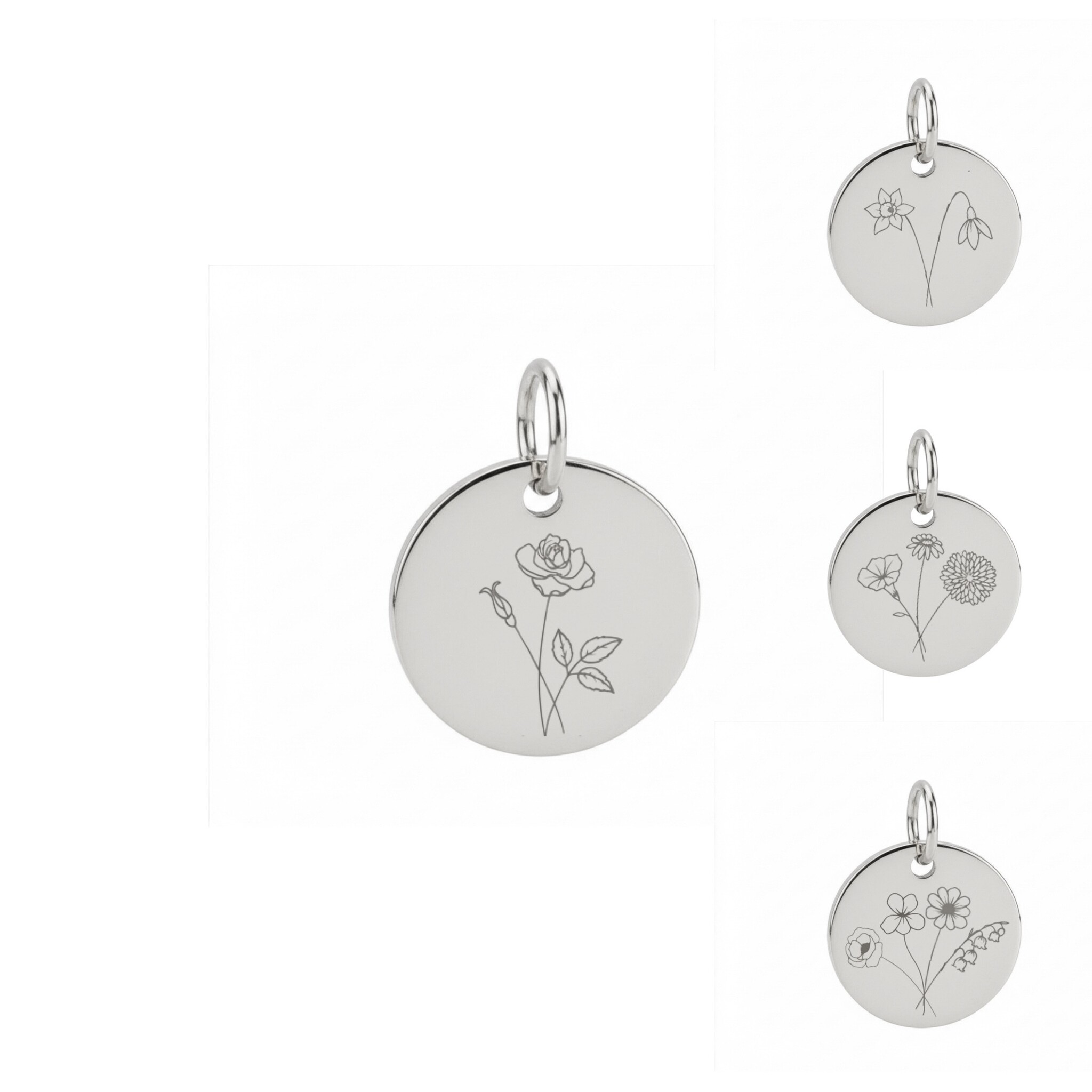 Gepersonaliseerde geboortebloem bedel coin zilver
