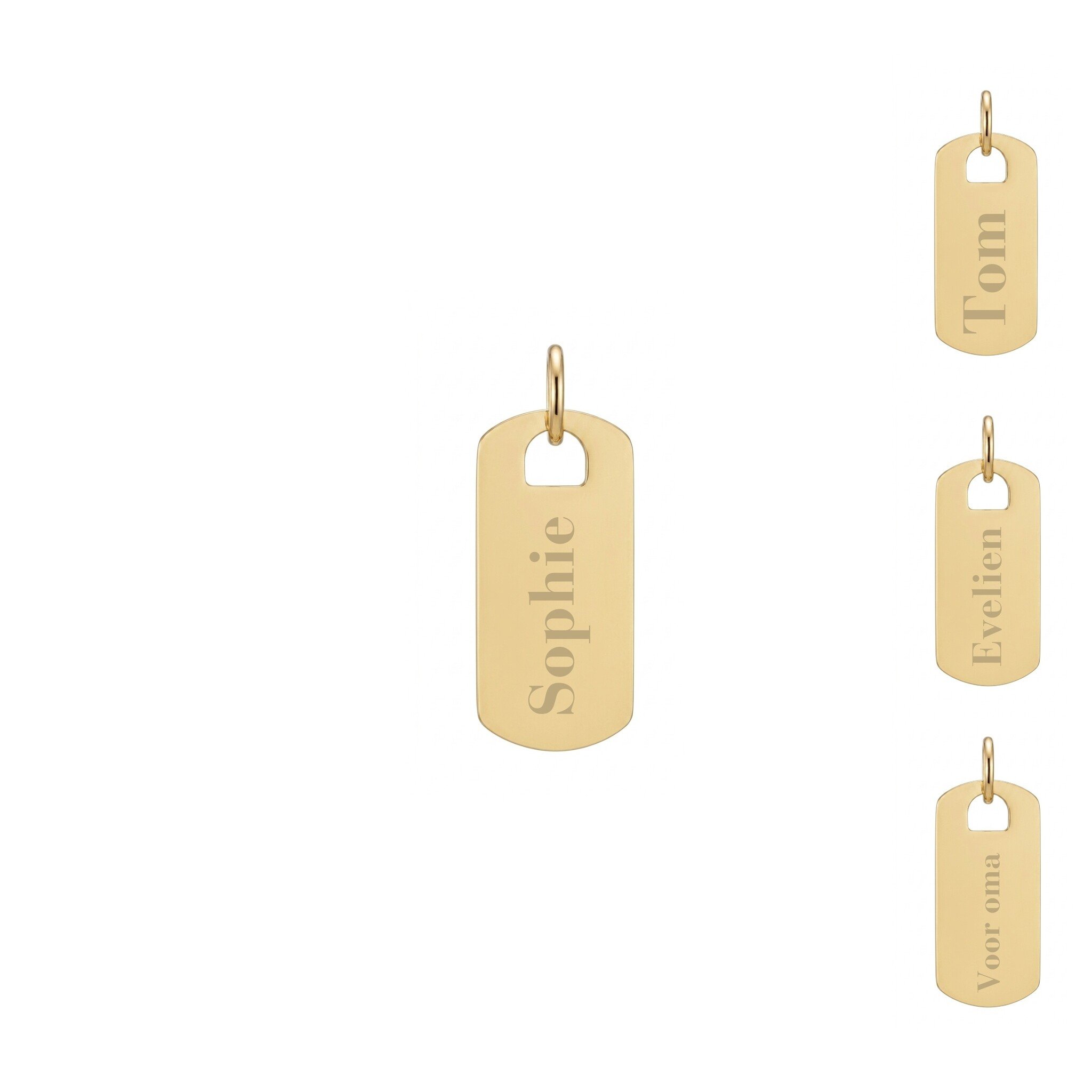 Gepersonaliseerde naam bedel tag goud