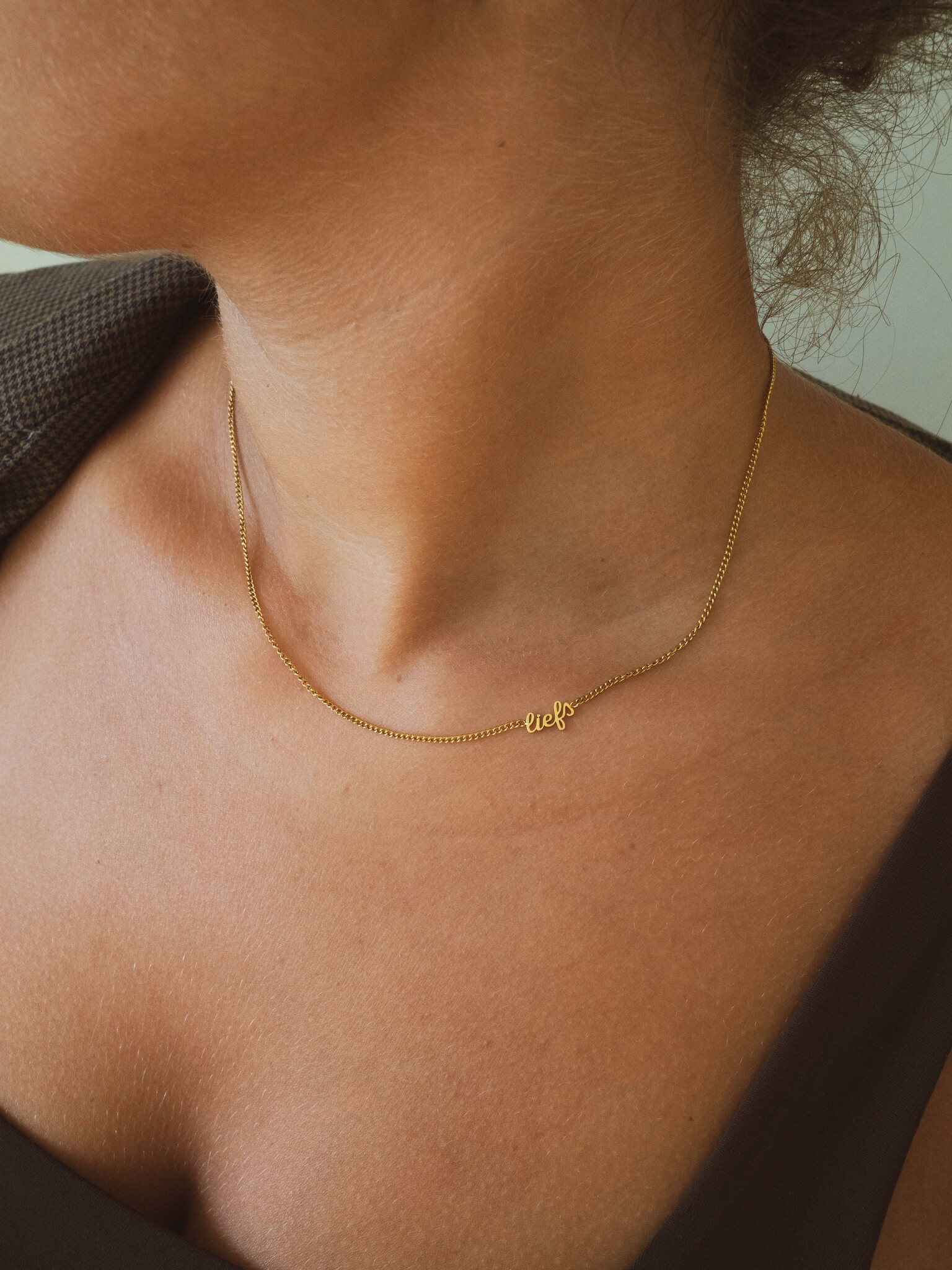 Dit fijne kettinkje straalt eenvoud en elegantie uit, met het lieve detail van “Liefs” aan de zijkant. Perfect voor dagelijks dragen, alleen of gecombineerd met andere kettingen voor een subtiele layered look. Het minimalistische design maakt het een tijdloos accessoire dat elke outfit een persoonlijk en stijlvol accent geeft. Een klein sieraad met een grote uitstraling, ideaal om cadeau te doen of jezelf te verwennen.