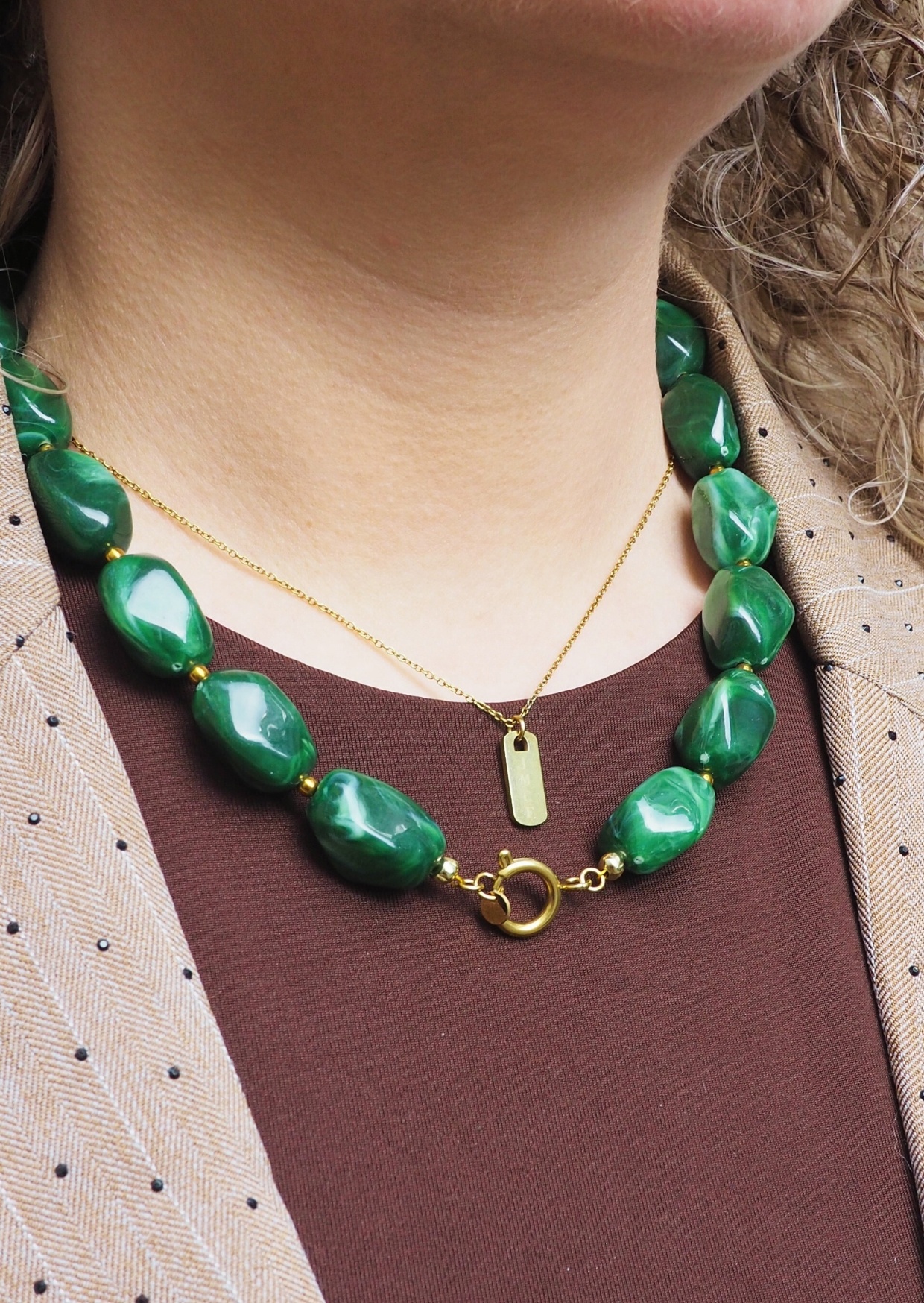 Het chunky design geeft een moderne, edgy uitstraling, terwijl de bruine tint zorgt voor een natuurlijke en tijdloze touch. Draag hem solo als eyecatcher of mix en match met subtielere kettingen voor een trendy layered effect. Lichtgewicht en comfortabel, deze ketting is ideaal voor dagelijks gebruik én speciale gelegenheden.