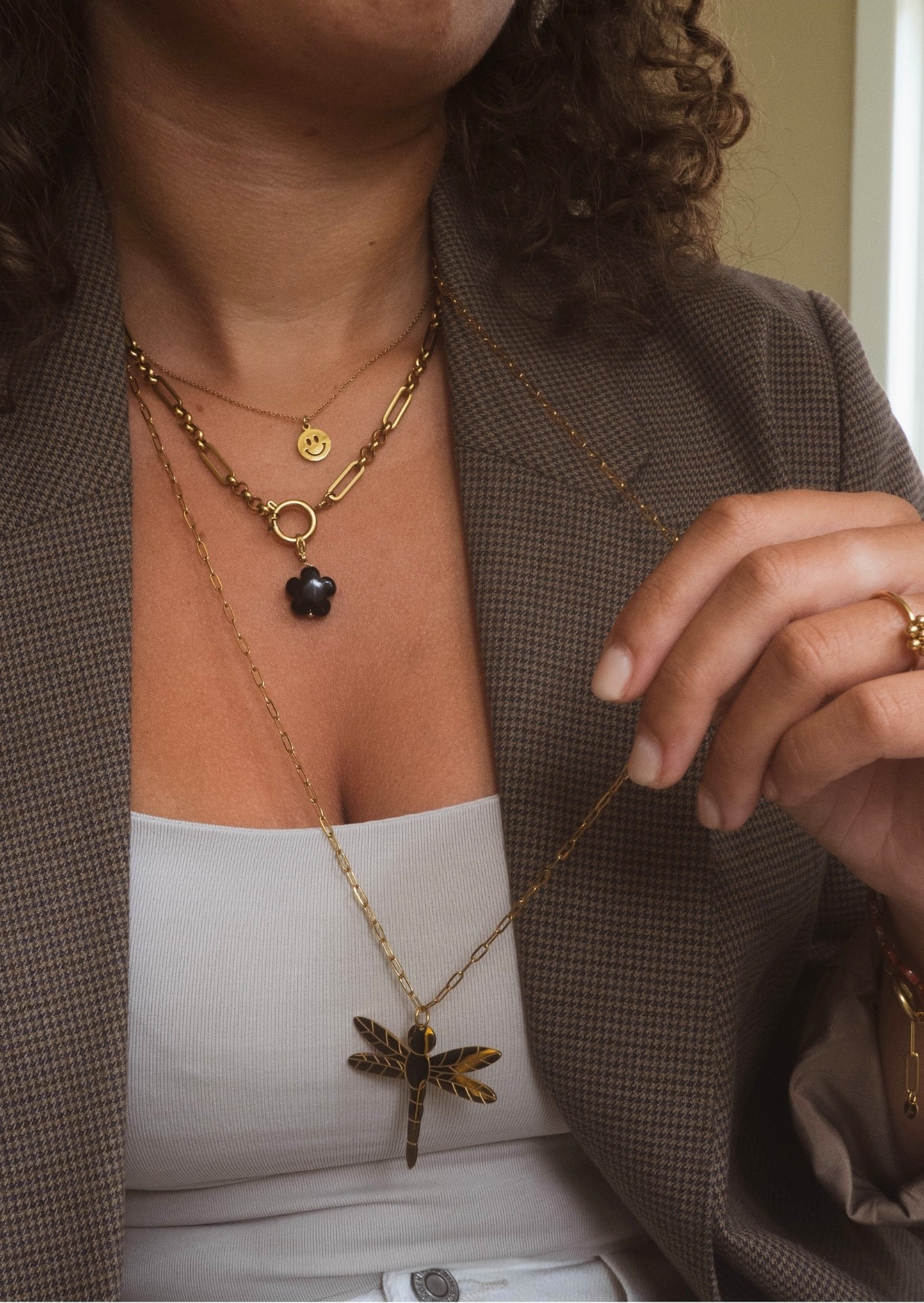 Deze ketting met een smiley geeft iedere outfit een speelse en vrolijke uitstraling. Het eenvoudige, stijlvolle design maakt hem perfect voor dagelijks dragen of om te combineren met andere kettingen voor een trendy layered look.