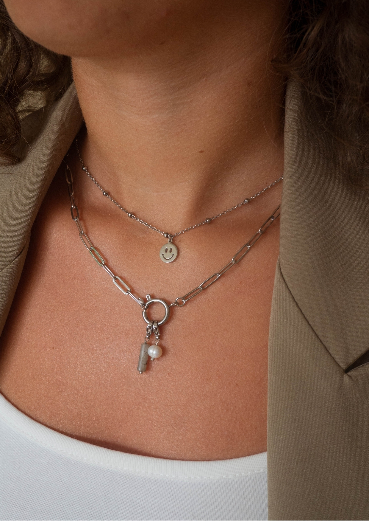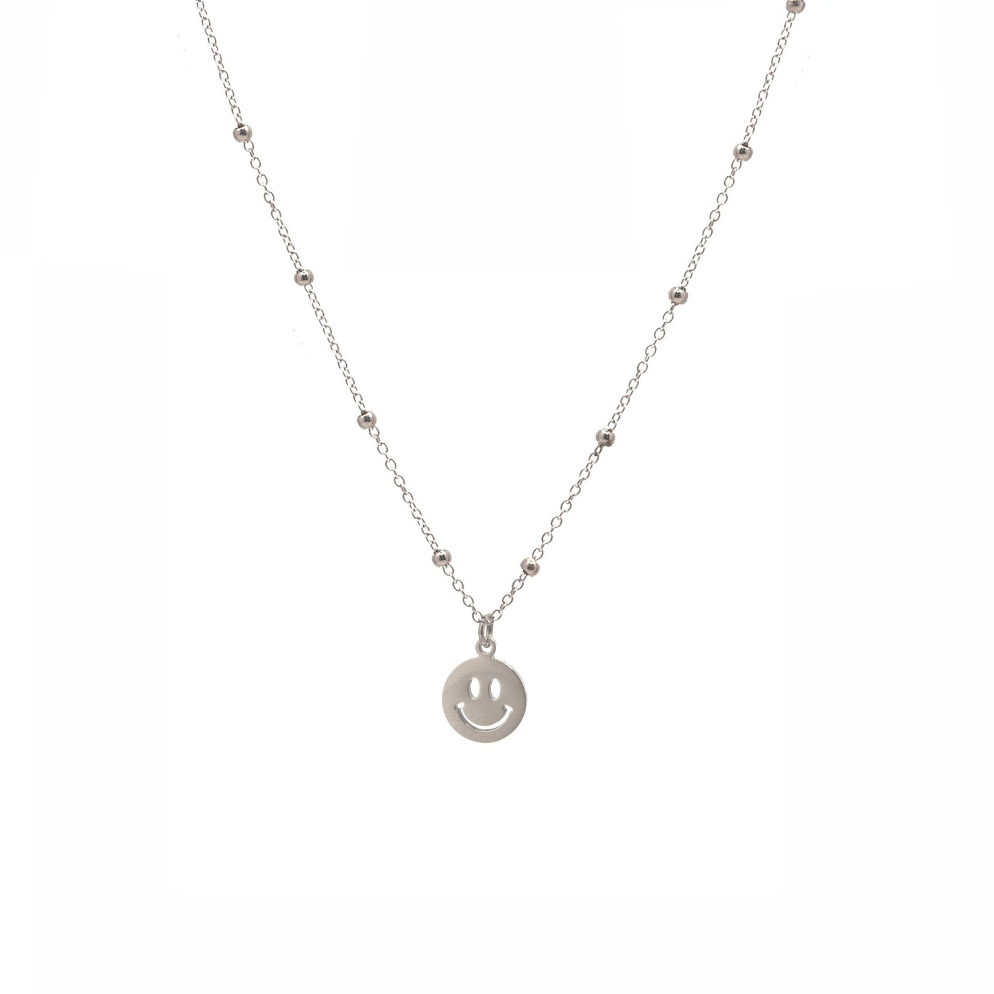 Deze ketting met een smiley geeft iedere outfit een speelse en vrolijke uitstraling. Het eenvoudige, stijlvolle design maakt hem perfect voor dagelijks dragen of om te combineren met andere kettingen voor een trendy layered look.