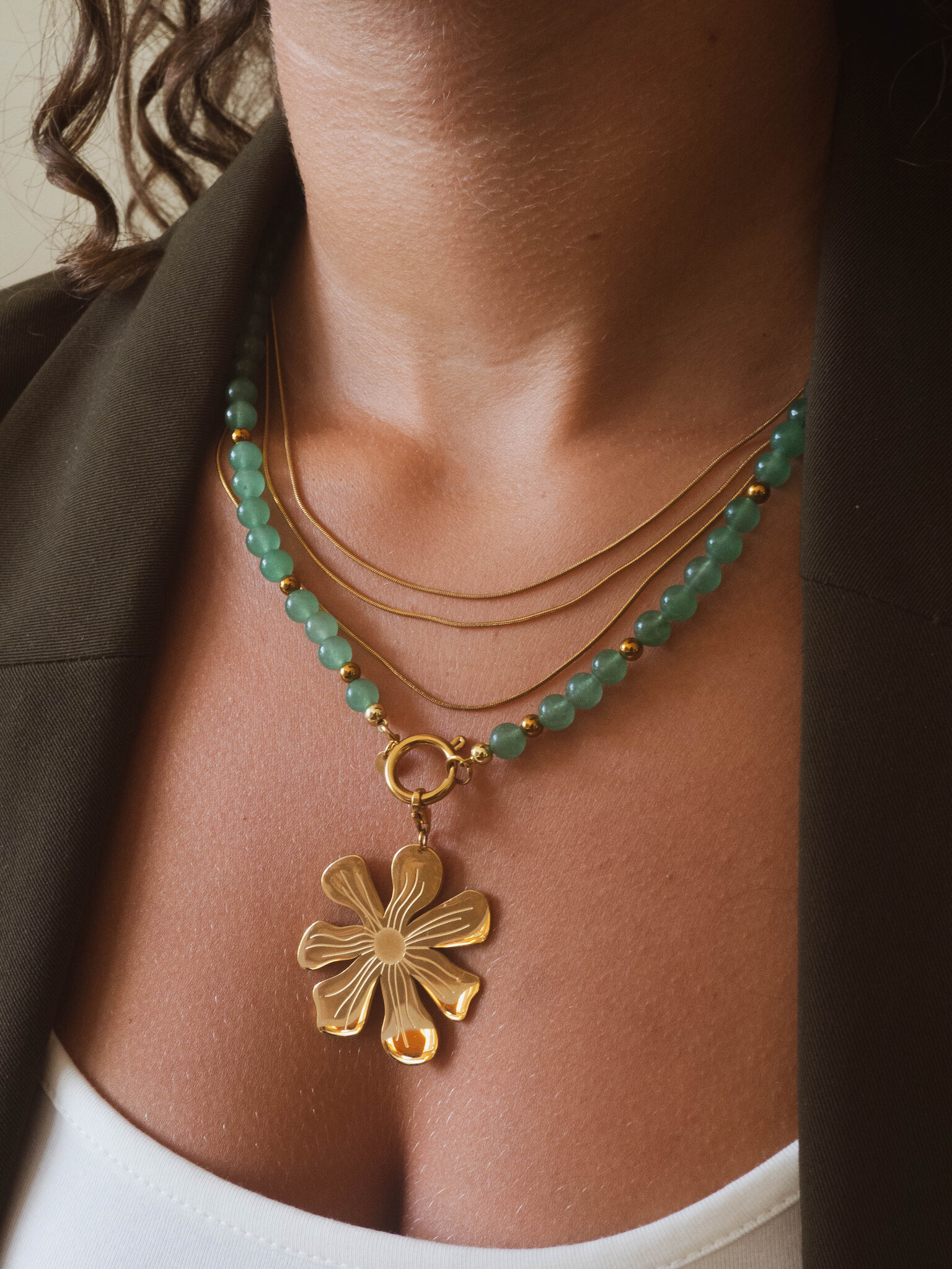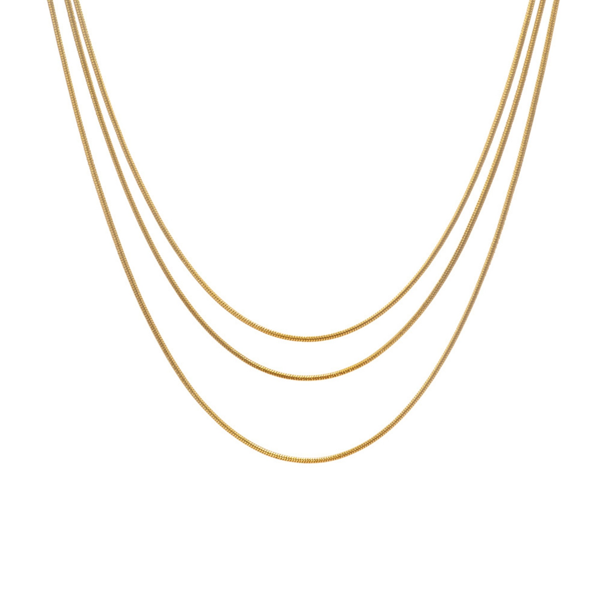 Dit fijne kettinkje combineert drie lagen van dezelfde subtiele schakel, waardoor het lijkt alsof je meerdere kettingen draagt. Het minimalistische en verfijnde ontwerp maakt het ideaal voor dagelijks gebruik, maar ook perfect om je outfit een elegante touch te geven. Draag het solo voor een chique look of combineer met andere sieraden voor een trendy, gelaagde stijl. Een veelzijdig en tijdloos accessoire dat moeiteloos iedere outfit compleet maakt.