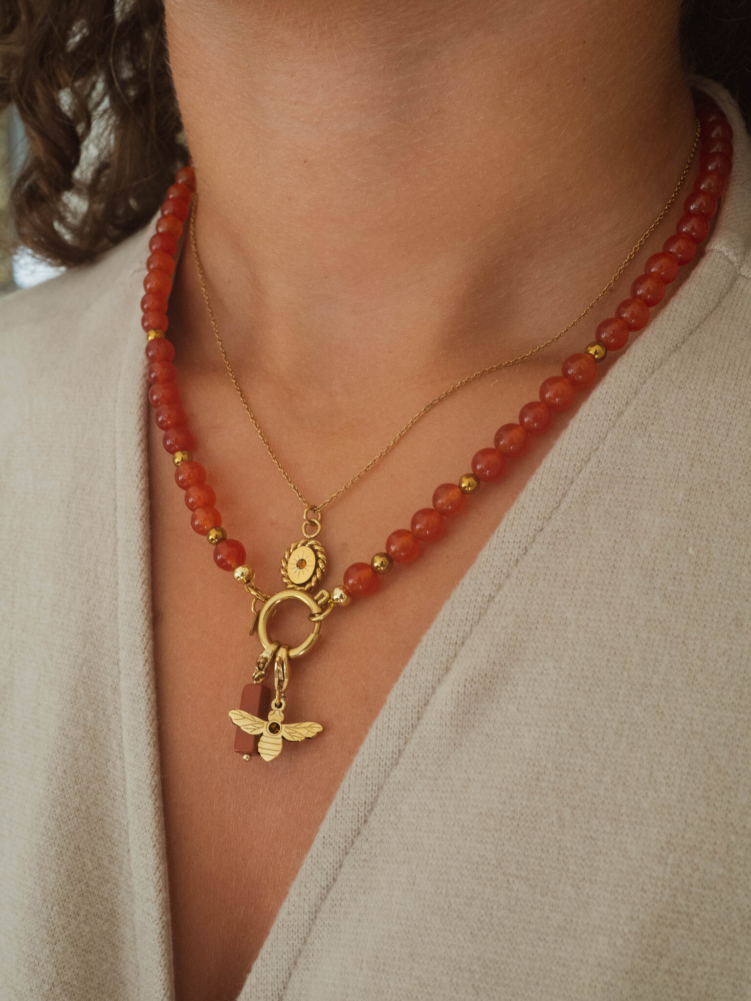 Deze ketting krijgt een klassieke en stijlvolle touch dankzij de ovale bedel met twisted rand en het warme bruine diamantje in het midden. Het ontwerp is elegant en tijdloos, waardoor de ketting makkelijk te combineren is met verschillende outfits. Draag hem solo voor een subtiel statement of mix met andere kettingen voor een gelaagde, persoonlijke look. Een veelzijdig sieraad dat warmte en stijl toevoegt, terwijl het delicate detail van het diamantje een luxueuze en verfijnde uitstraling geeft.
