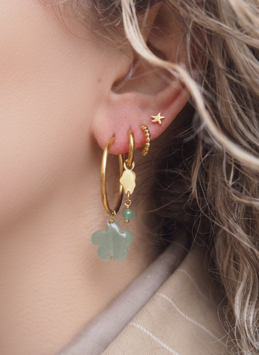 Deze grotere oorringen zijn afgewerkt met een grote bloemvormige edelsteen die los aan de ring bungelt en zorgt voor beweging en impact. De combinatie van de oorring en de opvallende edelsteen maakt deze oorbellen perfect als statement sieraden. Ideaal voor wie houdt van bijzondere oorbellen die toch makkelijk te dragen zijn. Deze bloem oorbellen zijn perfect voor feestjes, zomerse outfits en avonden waarop je look net wat extra mag hebben. Een echte eyecatcher voor liefhebbers van opvallende oorringen en unieke sieraden.