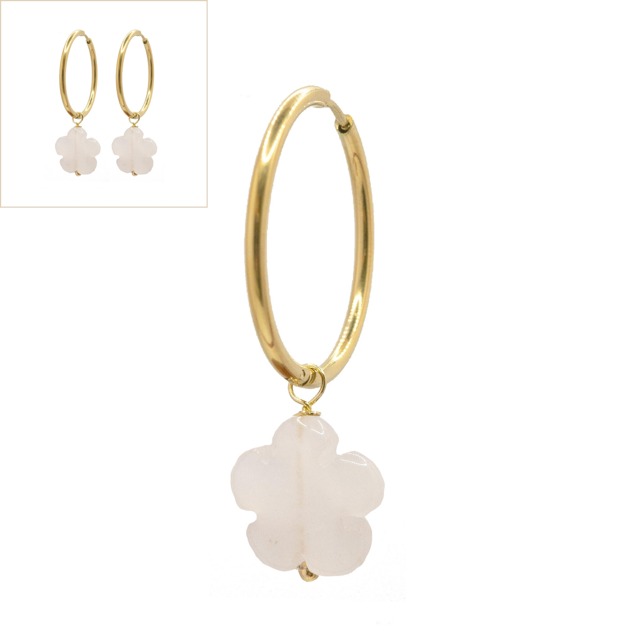Oorbellen big flower witte jade goud