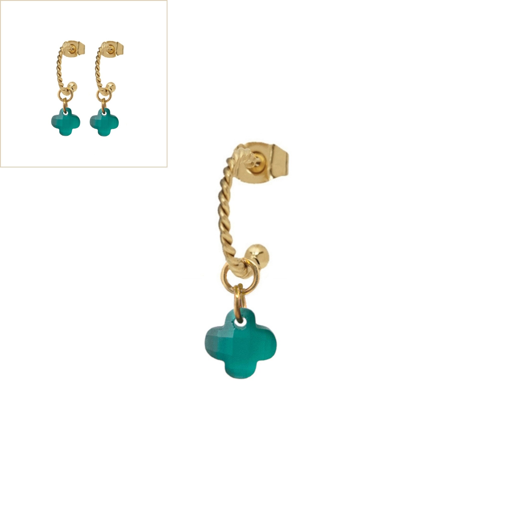 Oorbellen twisted clover mat smaragd groen goud