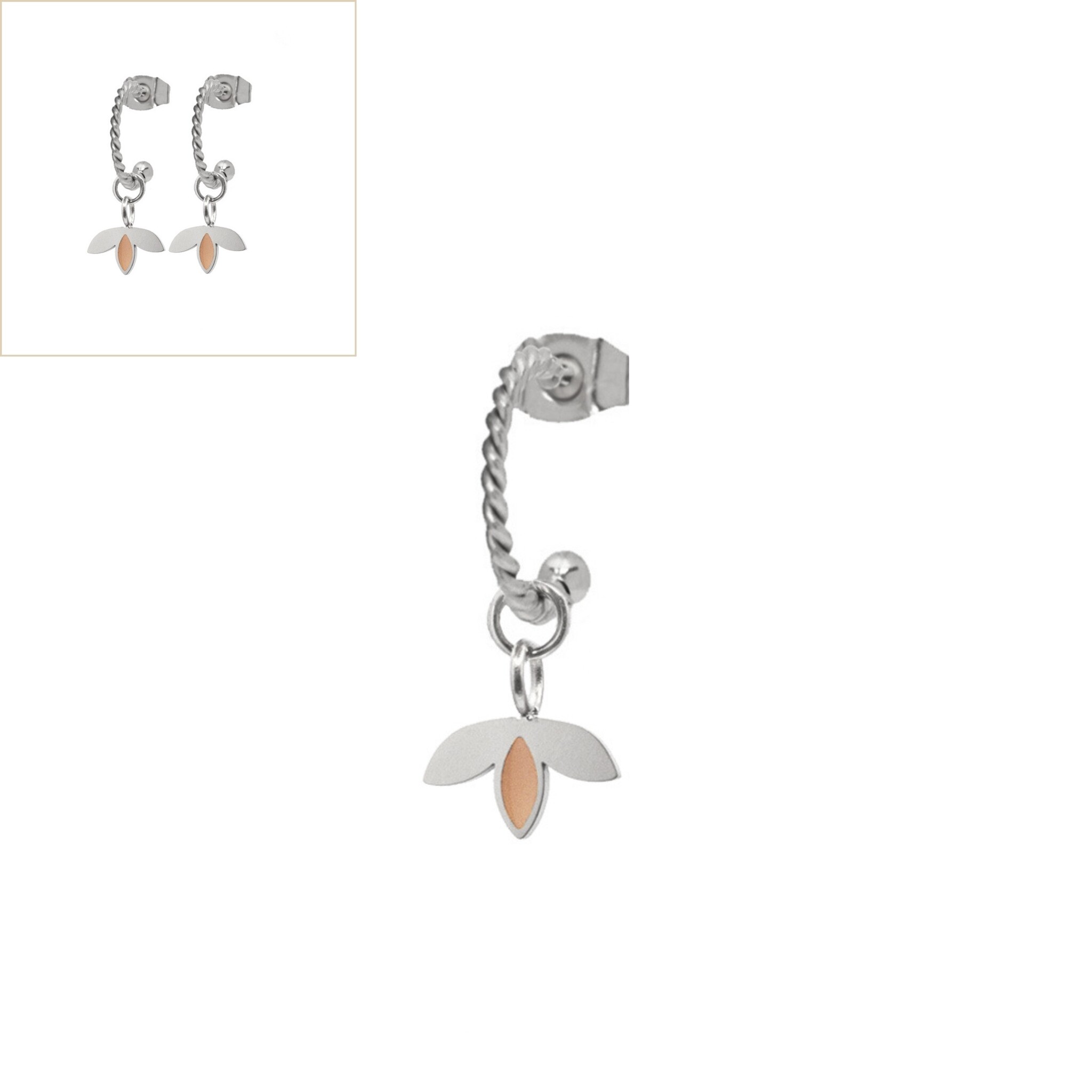 Oorbellen twisted little leaf sand zilver