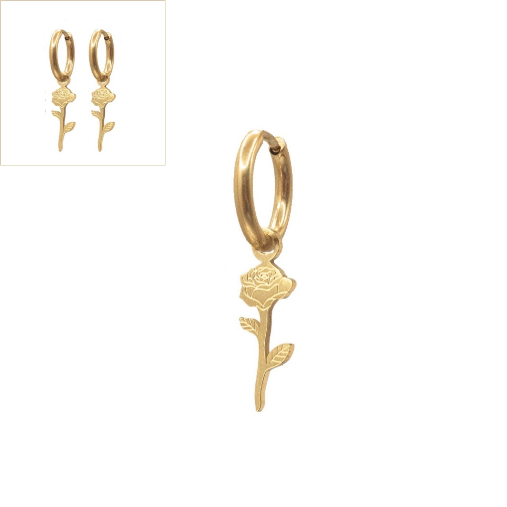 Dit roosje steelt de show bij iedere outfit. Draag 'm mooi op zichzelf of combineer 'm met een van onze andere oorbellen. Geen zorgen, dit roosje verwelkt niet!