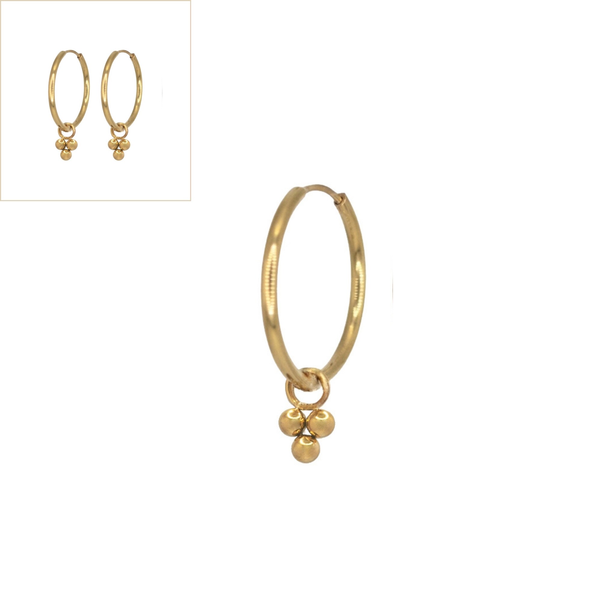 Soms zit kracht in eenvoud. Deze fijne oorbel met drie kleine bolletjes is dé perfecte toevoeging aan jouw earparty. Het minimalistische design maakt ‘m makkelijk te combineren met andere sieraden, terwijl de drie bolletjes nét dat beetje textuur en speelsheid toevoegen.