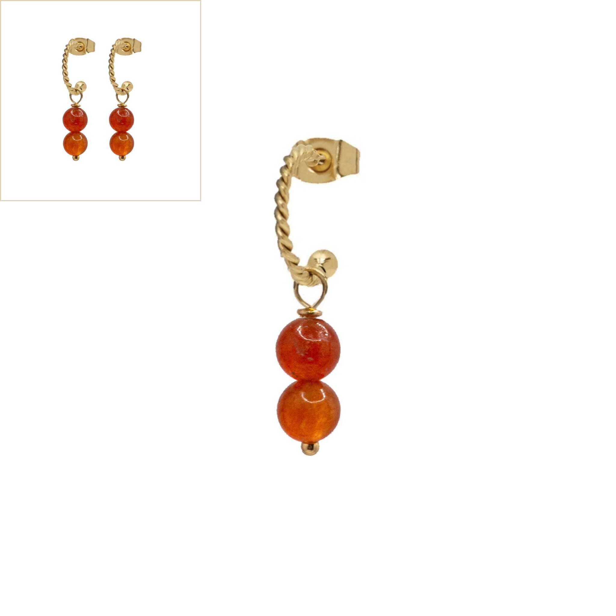 Oorringen 6mm jade roestbruin twisted goud