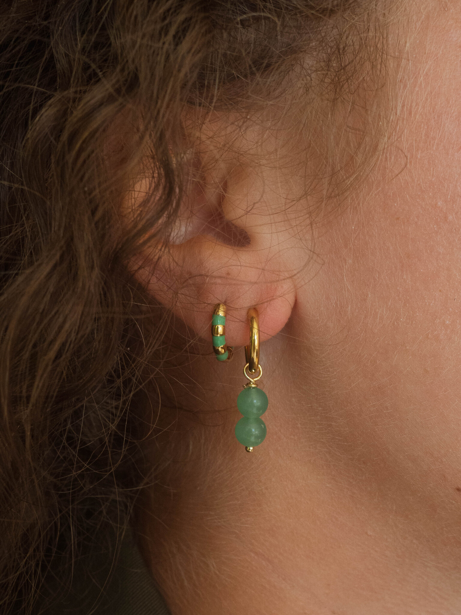 Deze jade oorbellen zijn de perfecte toevoeging voor iemand die wat kleur wil toevoegen! Door het eenvoudige maar speelse design voeg je moeiteloos wat extra’s toe aan je outfit. Ideaal om solo te dragen voor een verfijnde touch, of juist om je earparty mee op te fleuren. Combineer ‘m met de jade ketting voor een set, of mix en match met onze andere sieraden.