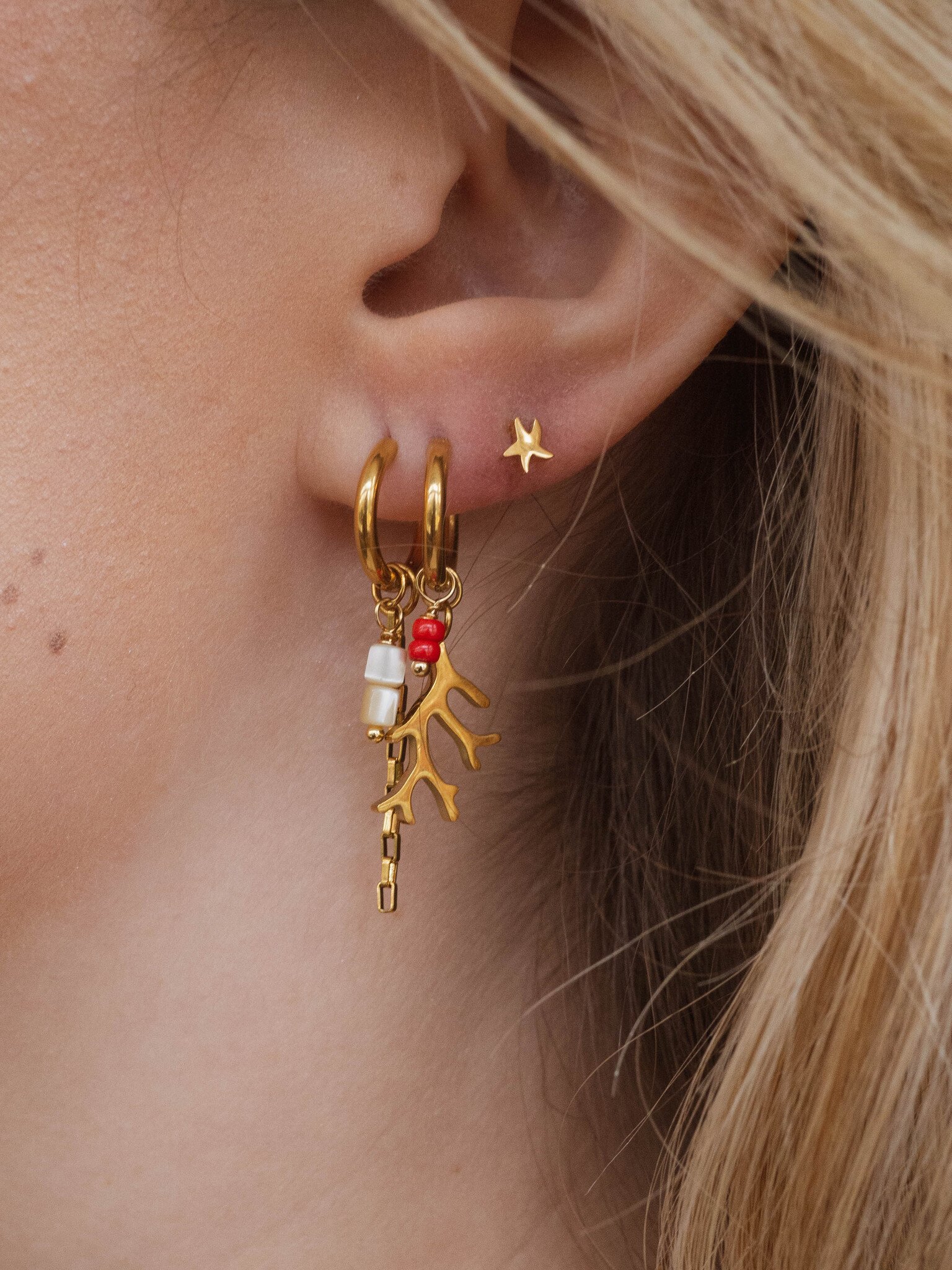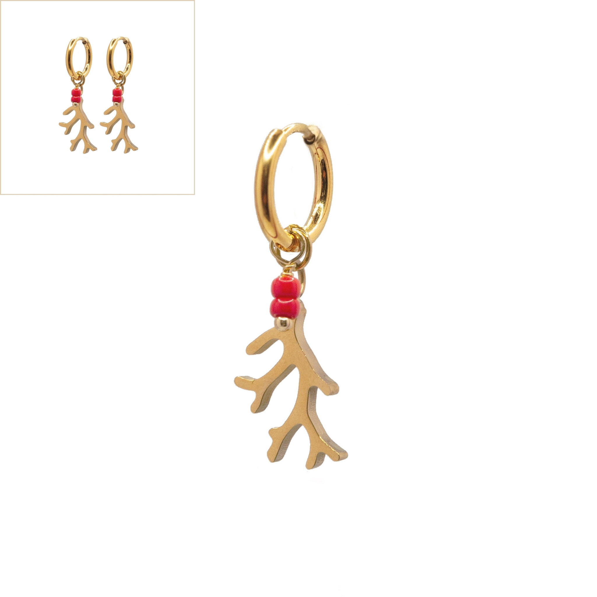 Deze oorbel in de vorm van koraal heeft twee kleine rode miyuki kraaltjes die zorgen voor een fris kleuraccent. Het koraal design geeft de oorbel een speelse, zomerse uitstraling zonder te groot te zijn. Ideaal voor dagelijks gebruik of als subtiele statement oorbel. Perfect voor wie zoekt naar zomerse oorbellen, oorbellen met kraaltjes, rode accenten en unieke sieraden met een moderne twist.