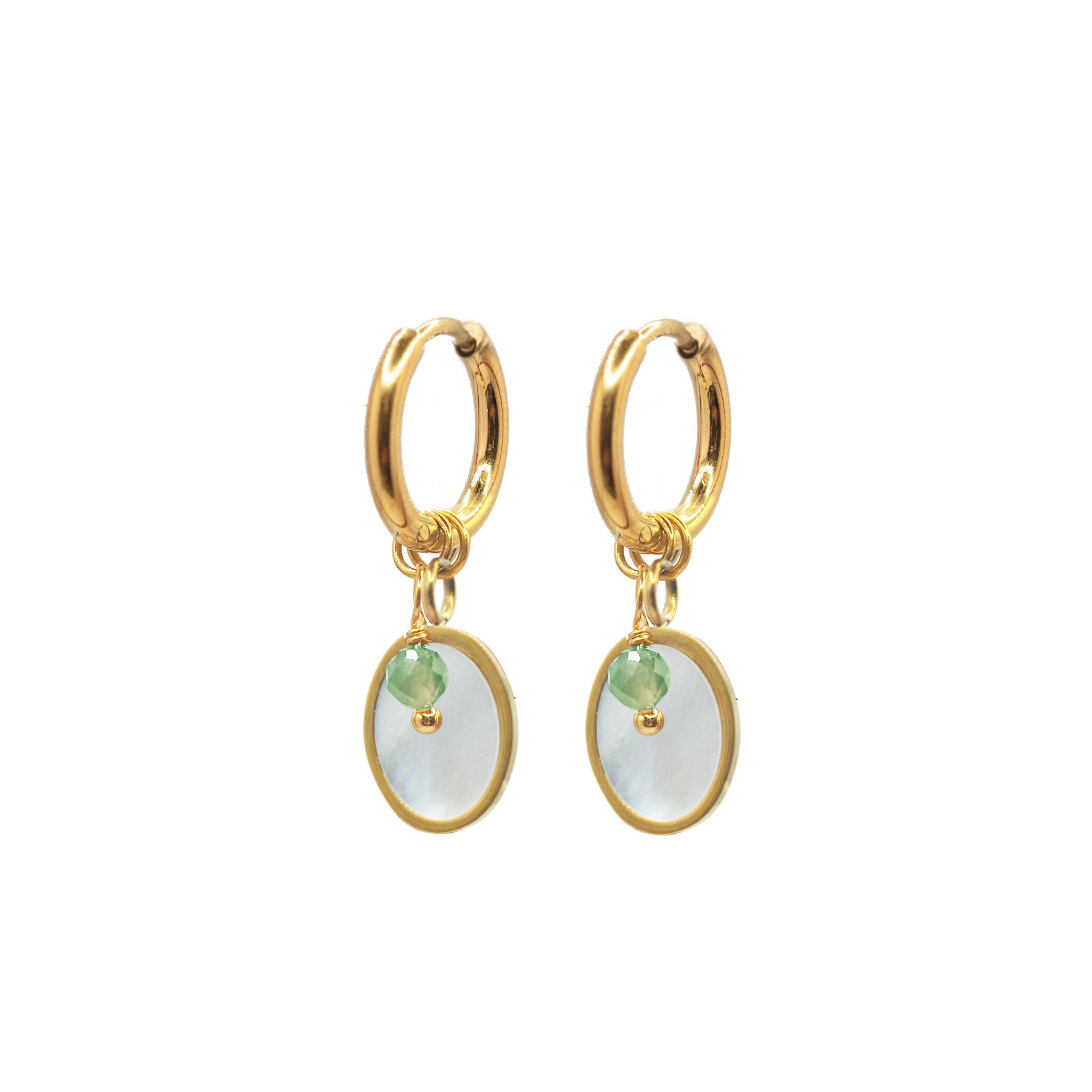 Voeg een vleugje natuurlijke schoonheid toe aan je sieradencollectie. Deze schitterende oorbellen zijn vervaardigd uit een fijne ovale schelp, die met de hand is afgewerkt met een subtiel gouden randje. De combinatie van het organische materiaal en de goudkleurige details zorgt voor een tijdloze, luxe uitstraling.