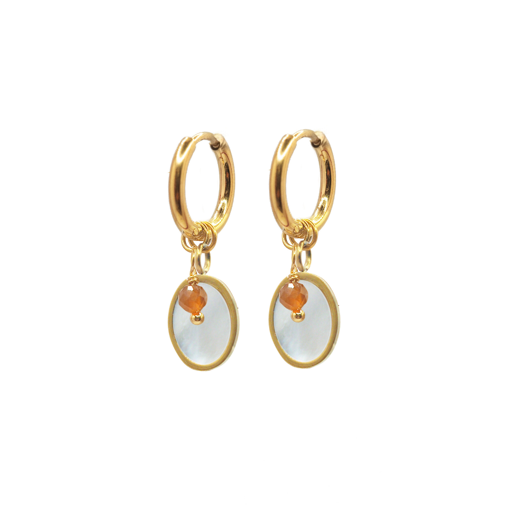 Oorringen shell oranje granaat goud