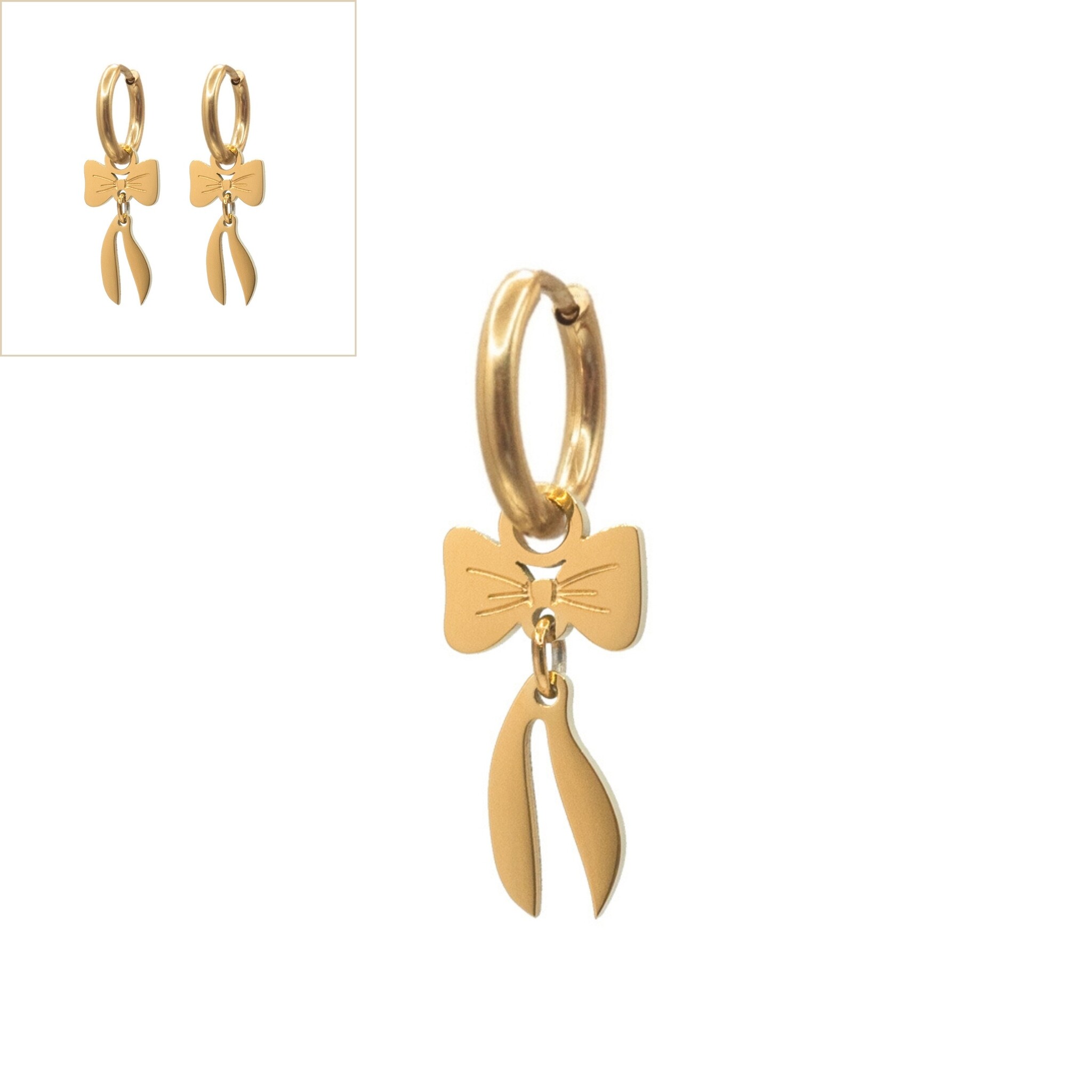 Een subtiele showstopper: deze oorbel in de vorm van een strik combineert charme met een speelse twist. De linten bungelen los onder de strik en vangen het licht bij iedere beweging. Perfect voor wie haar look net dat beetje extra wil geven: of je nu een casual outfit opfleurt of je party look compleet maakt. Wat je stijl ook is: deze strik maakt ‘m af.